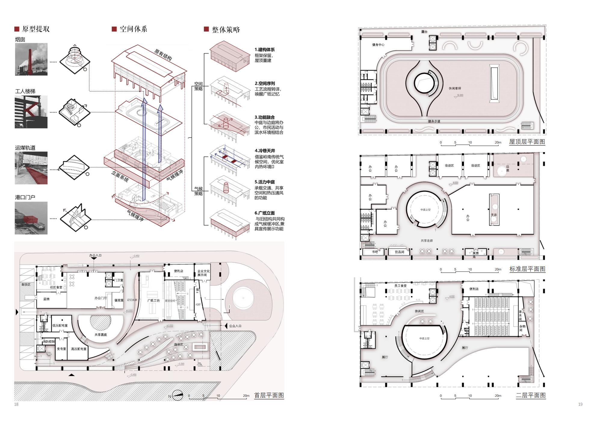 本方案位于广州市珠江后航道的工业遗址带上,为广纸储煤仓厂房改造项目。方案将场所记忆与滨水气候空间相结合,旨在通过对既有储煤仓结构的保护与再利用,营造涵盖广纸场所记忆的片区市民中心。